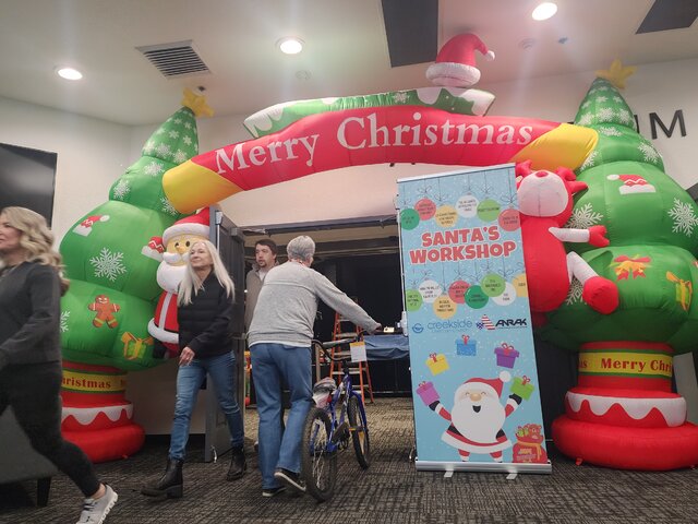 christmas entry arch with santa clause