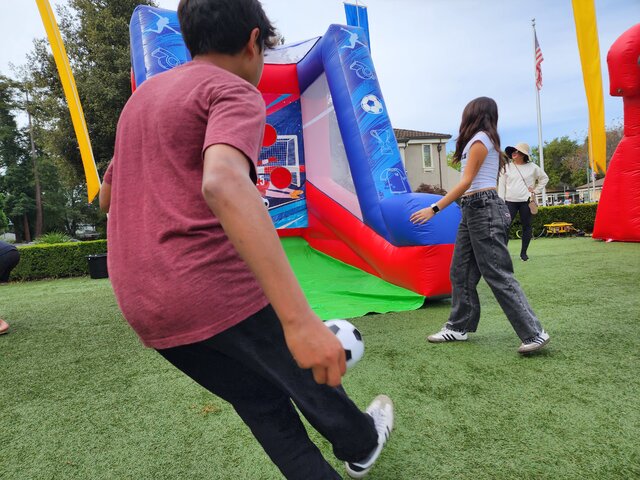 Elevate your next event with our Soccer Fever inflatable game rental! This interactive attraction invites players to compete in a dynamic soccer shootout, aiming at precision targets while racing to clear their lane of balls. With continuous play and competitive energy, it’s the ideal addition to birthdays, school events, corporate gatherings, and sports-themed celebrations. The Soccer Fever Challenge ensures an engaging, active, and memorable experience for guests of all ages.